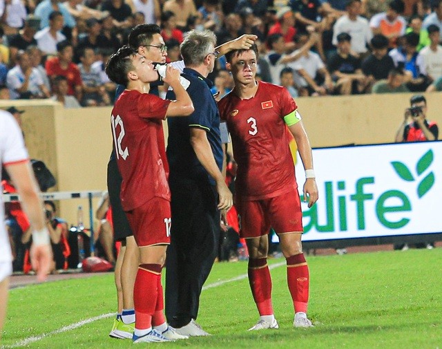 Chiến lược gia người Pháp vỗ vai động viên Văn Toàn.